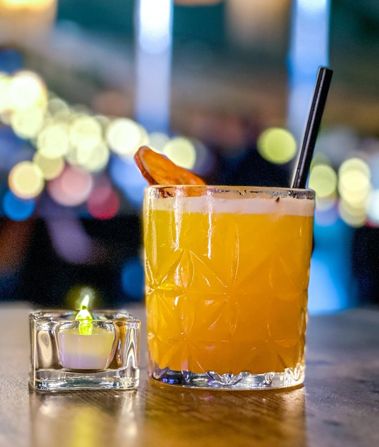 Le Tropical Gin Sour est une variation éclatante du classique sour, mêlant gin premium, notes de fruits tropicaux et une touche d’agrumes pour une expérience rafraîchissante et sophistiquée.